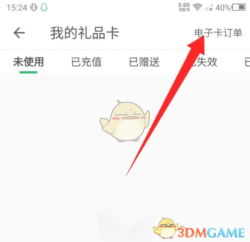 3、进入我的礼品卡页面,点击右上角的电子卡订单查看。