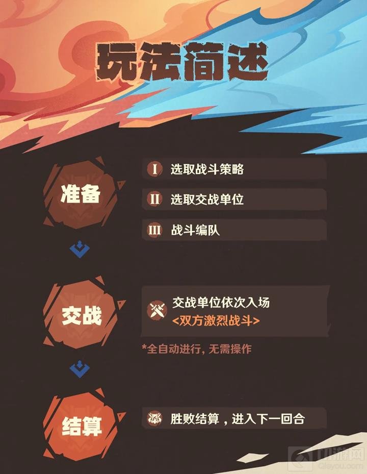 双方的交战单位将依照出场顺序自动入场,向对方行进,并自动发起攻击。击败对方所有单位即可获得胜利。