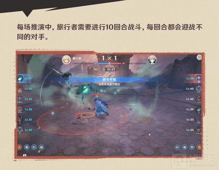 每场推演中,旅行者需要进行10回合战斗,每回合都会迎战不同的对手。回合失败时将扣除体力,每轮推演会在完成10个回合战斗或者输掉4个回合后结束。