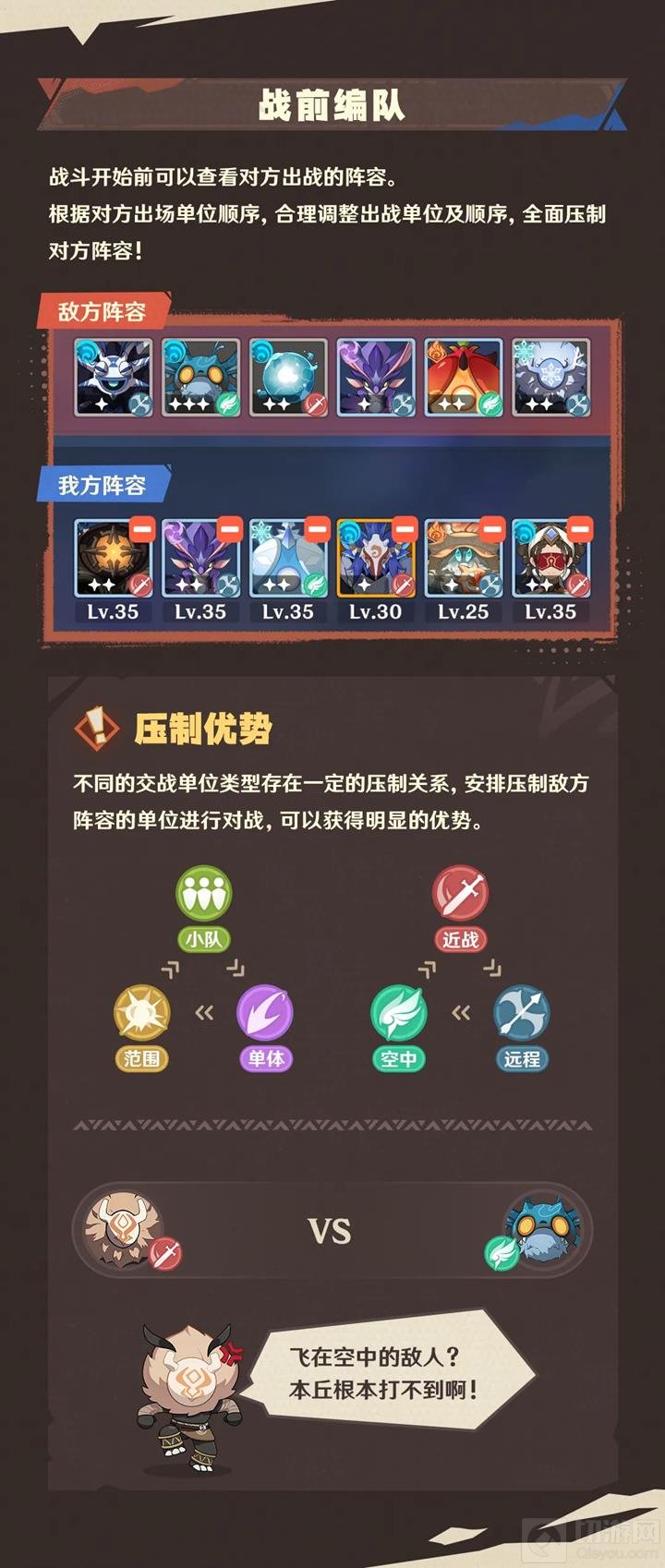 不同的交战单位存在一定的压制关系,安排压制敌方阵容的单位进行对战,可以获得明显的优势。具体的压制关系可以参照上图。