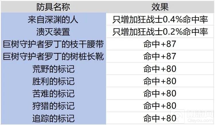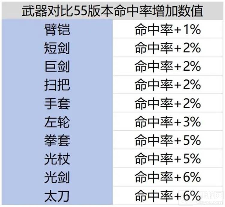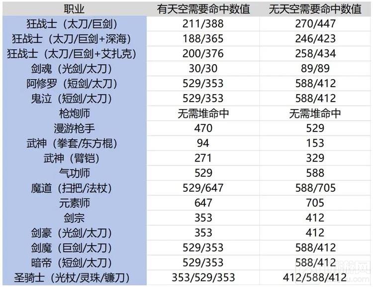 各职业的buff增益和所佩戴的武器不同,需要分别计算所需的命中数值:
