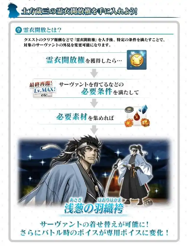 完成活动主线之后,在活动商店还会追加河上彦斋和土方岁三的灵衣兑换,增加了灵衣户口,之后刷牵绊也更加容易了,尤其是河上彦斋,在后续杀阶冠位战各方面的表现应该会很好。