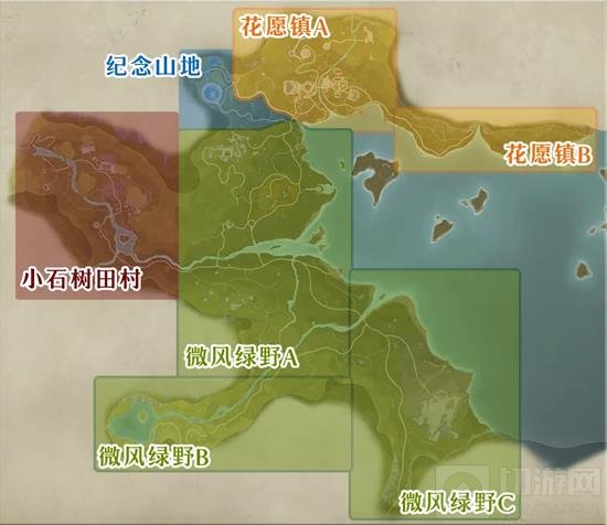 地图区域划分:本攻略的地图区域划分与官方设定一致,但小片的ABC描述是自设的,为了更好展示。