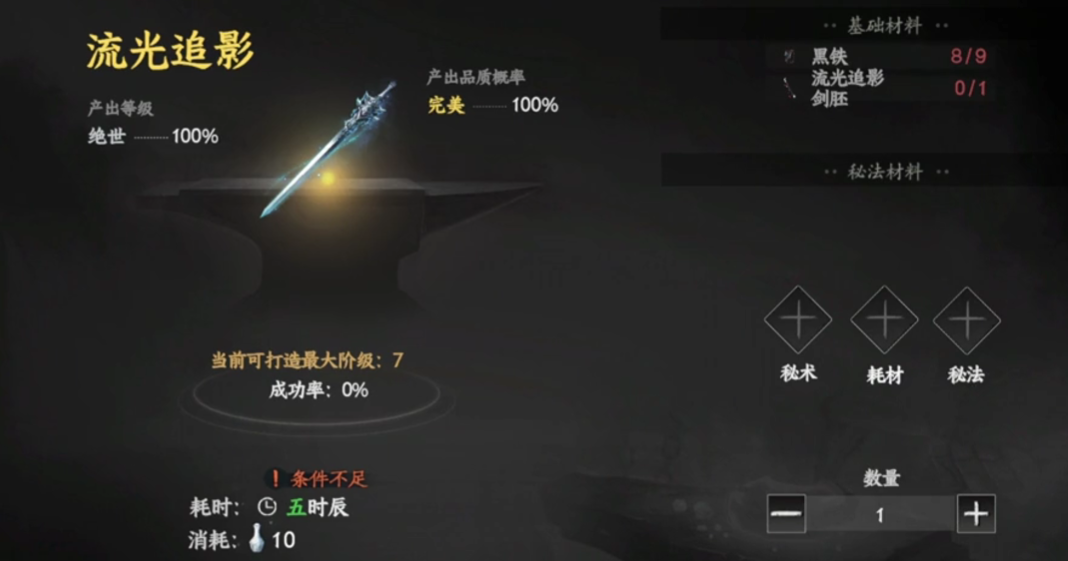 第三种方式就是获得流光追影的配方,此时玩家就可以自己锻造流光追影这个武器了,流光追影的基础材料一个是黑铁,另外一个则是流光追影剑胚,但是获得剑胚需要玩家达到关卡的后期才能获得,基本上已经通关,所以小编更推荐小伙伴们增加独孤飞鸿的好感,直接索要是最快的获取方法。