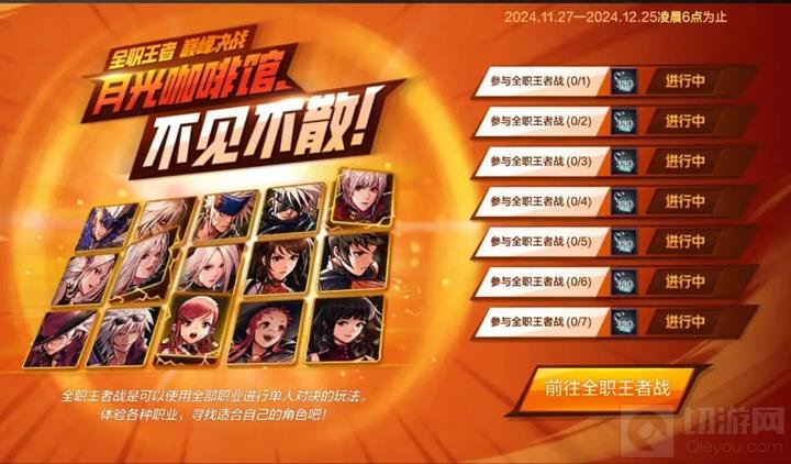 参加PK场的新玩法,巅峰王者战,玩法类似PK,不同之处在于可以自选角色参与战斗,并且绑定了活动,累计参加可领取2100个决斗币,同时,王者战也被纳入决斗场的每日任务。