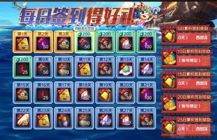 接下来,每日简单点击完成每月签到,本月签到保持之前的奖励,将闪光药剂更改为西部深渊药剂(70%),终于变得有用了。