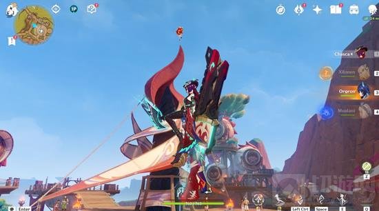 1号火神瞳:位于此处小岛上方高空中,需要先完成下方的「秘源哨机」挑战,之后神瞳正下方就会出现气态燃素形成的风场,魂附于绒翼龙随风场升起即可拾取。开启「秘源哨机」挑战后,魂附于绒翼龙沿着空中布设的「聚流焚风」飞行,触碰两个铭印后,回到原位再次启动机关,击败敌人,即可完成挑战。气态燃素形成的风场有灼烧伤害,【魂附于绒翼龙】或使用【花羽会成员角色】即可避免伤害。