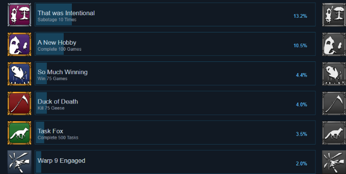 结语:上面就是心愿游戏的小编为你收集的《鹅鸭杀》成就获取攻略,希望帮到大家。