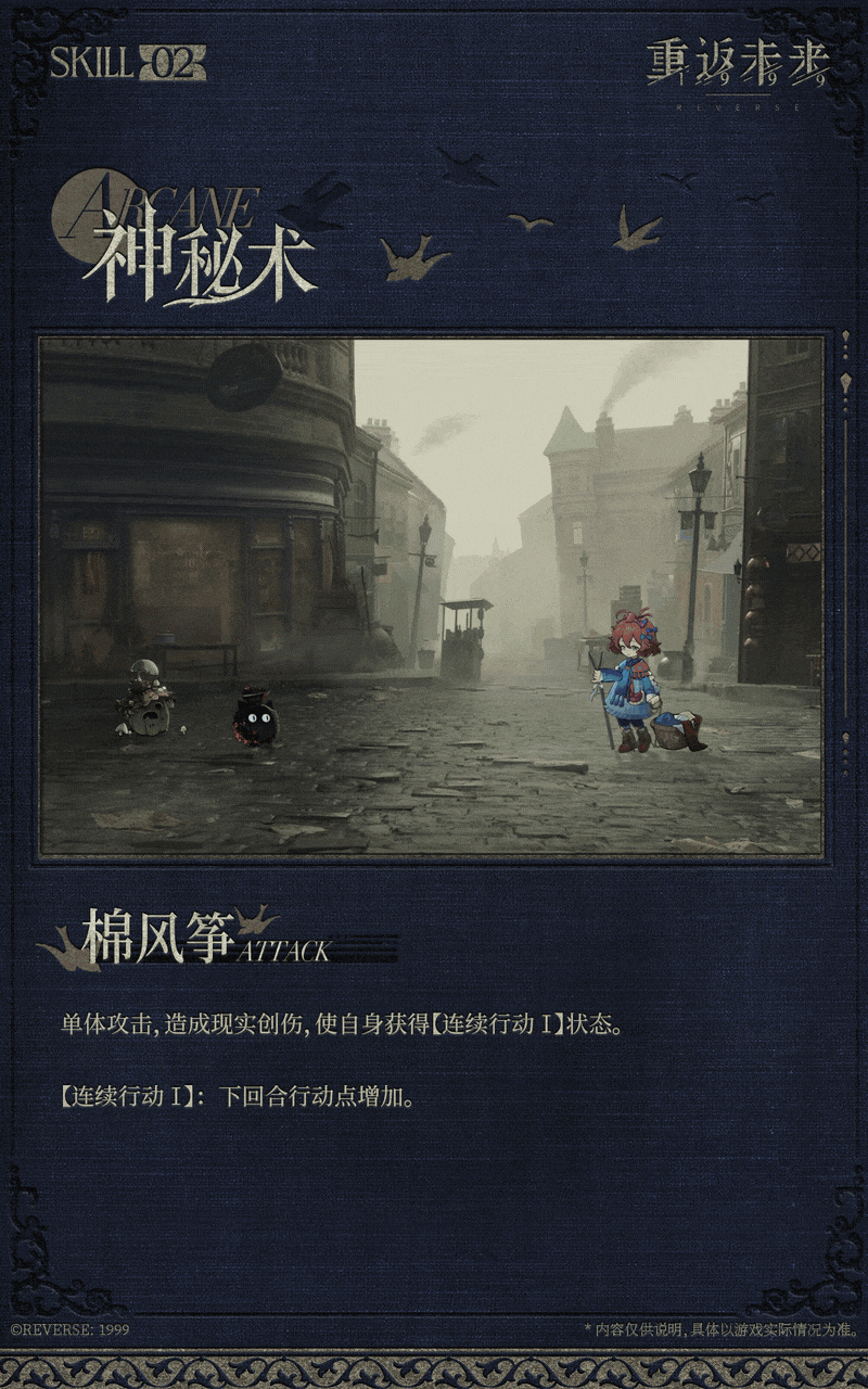 【连续行动1】:下回合行动点增加。这个技能可以在关键时刻给予敌人致命一击,并且通过【连续行动1】状态,可以在下一回合再次发动攻击。