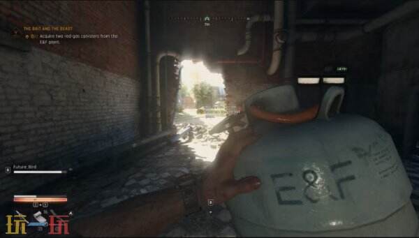 将红色汽油罐放置在墙洞外的标记处。一旦放置好两个罐子,会触发过场动画,莉迪亚等人抵达,任务进入下一阶段。