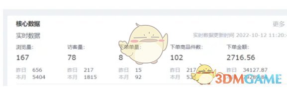 4、在“实时数据”一栏中,你可以直接查看到当天的销售额数据。这些数据通常是实时更新的,可以帮助你快速了解店铺的当前运营状况。