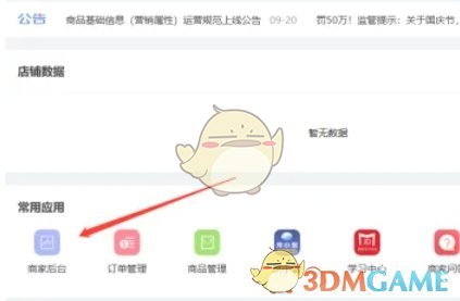 2、成功切换至自营店铺模式后,接下来需要点击屏幕上的“商家后台”按钮。这个按钮通常会位于主界面上比较显眼的位置,或者你可能需要通过一些导航菜单来找到它。