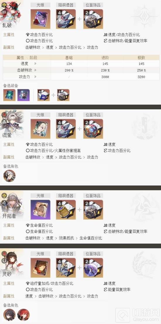 击破辅助:队伍中至少有一个角色能够提供减抗或者增加击破效率的技能,以最大化乱破的输出能力。