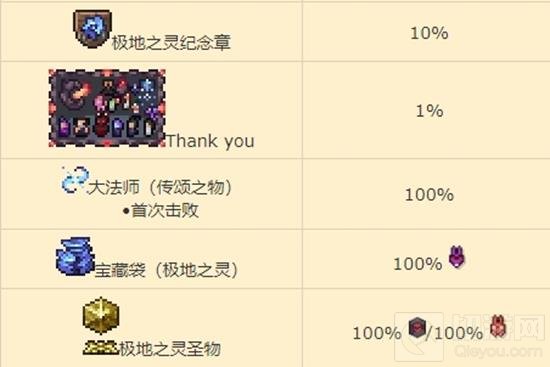 其他物品:包括极寒之魂、冰川石、霜冻之炎、冰川之拥、强效治疗药水、极地之灵面具、极地之灵纪念章等,每种物品都有不同的掉率。