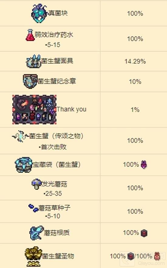 生成条件:使用节肢动物芽孢在发光蘑菇生物群落中召唤。