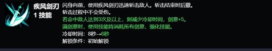 疾风剑刃:这是剑宗的一技能,它能够同时造成伤害和无敌效果。技能的基础伤害较低,范围也不足,但可以通过一定的配置来发挥理想的作用。技能期间,剑宗无法自由攻击和移动,灵活性较差。