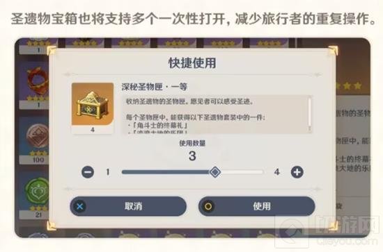 不仅如此,圣遗物宝箱也进行了相应的优化。游戏更新到5.1版本后可以一次性开启多个圣遗物宝箱,从而减少繁琐的操作。对于那些需要大量刷取圣遗物的玩家,这一功能大大提高了效率,节省了时间,让玩家能够更轻松地管理和获取资源。