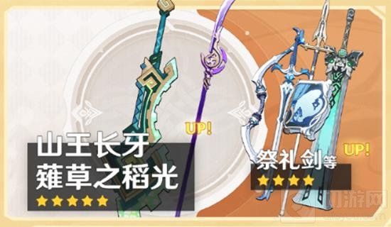 活动期间,限定5星武器「双手剑·山王长牙」「长柄武器难草之稻光」的祈愿获取概率将大幅提升!