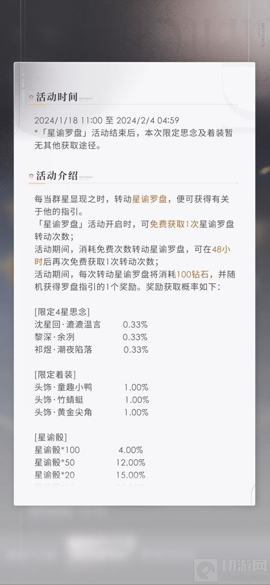 立即获得300星钻,并在接下来的30天内额外获得总计3000星钻、1800体力,体力上限提升50点。