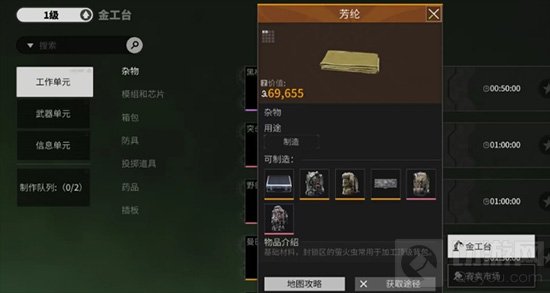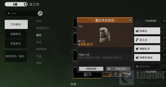 除了在战斗中获取,你还可以在金工台中自行打造心仪的背包。金工台提供了多种箱包的制作选项,从基础的越野背包到高级的曼巴突击背包,应有尽有。选择你想要制造的背包类型,系统会显示所需的材料清单。