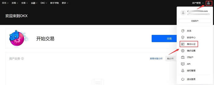 3.先验证身份(KYC验证)才可进行交易,在首页点击【个人中心】——【身份认证】进行身份认证。