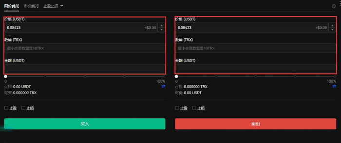7.填写购买数量,注意:最小交易买入数量是10个TRX。