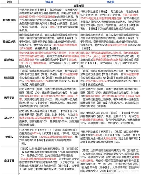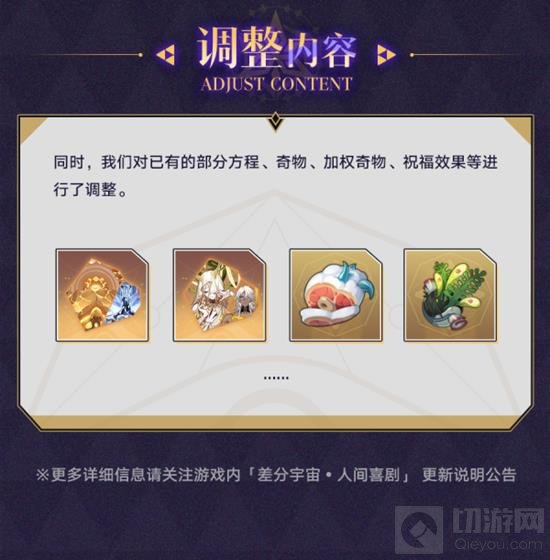 1.调整了部分方程、加权奇物、祝福、开拓祝福、命途特性、事件及奇物效果。