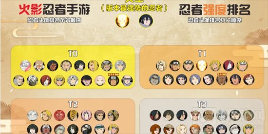 T0级别的忍者包括九喇嘛鸣人、永恒佐助、红面具、金式和大野木,这些忍者在游戏中拥有顶级的实力和人气。