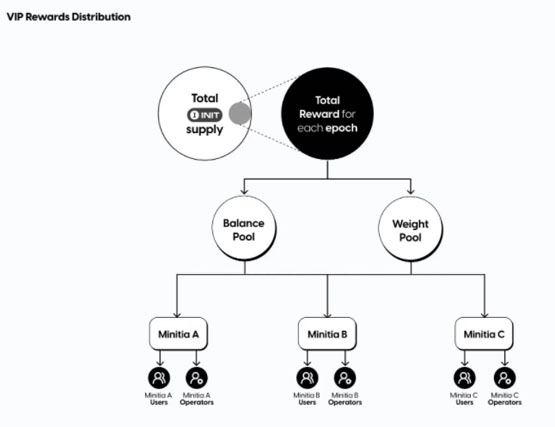 平衡池的奖励根据 Minitia 持有的 $INIT 数量按比例分配。
