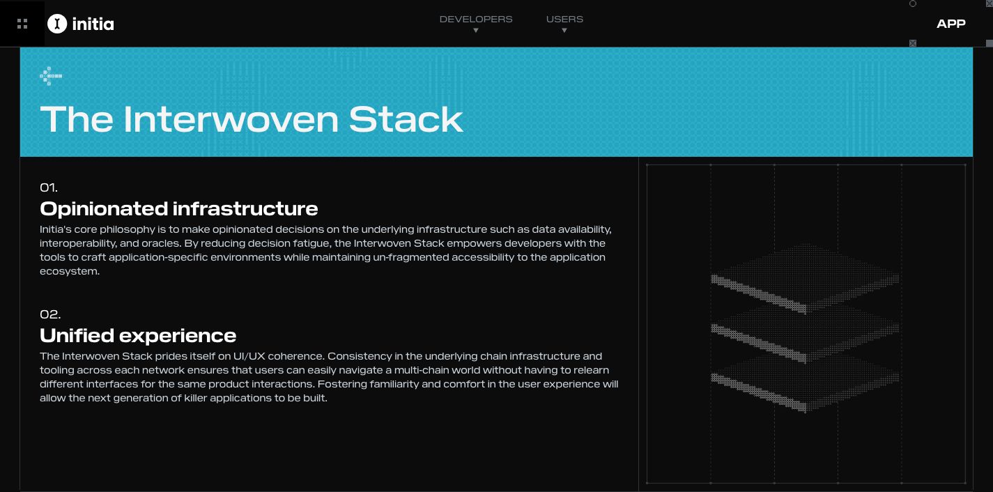 Initia作为一条模块化L1公链,基于Cosmos SDK构建,采用了CometBFT(原名Tendermint)共识机制,并整合了MoveVM以支持智能合约功能。其独特之处在于其“交织”(interwoven)设计,允许在其生态中部署并垂直整合多个Rollup,官方称之为“Minitias”,这一概念类似于Dymension的RollApps。