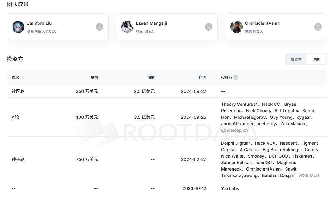 Delphi Digital领投的750w美元种子轮。在个人投资者中也不乏DCF GOD、naniXBT、熊链的BOSS烟熊等经验丰富的天使投资人。