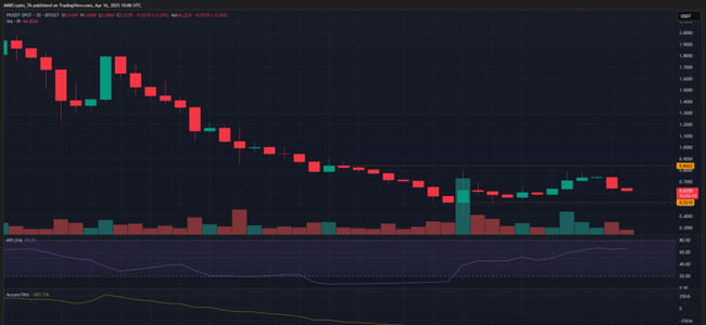 Pi Network [PI] 近几周持续呈现下行趋势,虽然整体看跌预期未变,但4月以来的跌势已有所放缓。