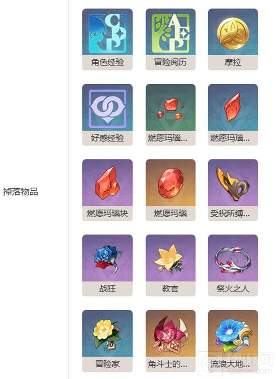角色经验、冒险阅历、摩拉、好感经验、燃愿玛瑙系列材料