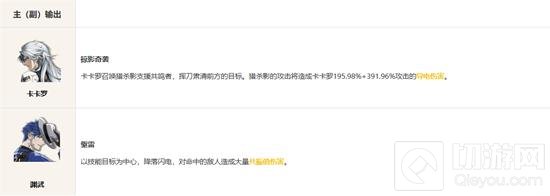 额外输出:卡卡罗,其掠影奇袭技能可以作为吟霖输出的补充,同时增强队伍的导电伤害。