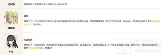 辅助角色:维里奈和白芷,通过其技能为吟霖提供生命回复和伤害加深效果。