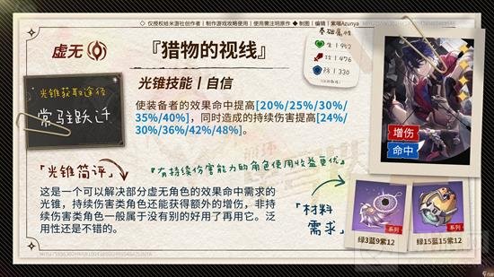 这个光锥提供了大量效果命中,是符合椒丘的技能需求的。另外又提供了高额易伤效果,虽然这个和椒丘本身的易伤是互相稀释的,但由于数值给的还行,提升也不小。触发机制也完全符合椒丘的能力,基础概率虽然低但椒丘本身就会堆很高的效果命中,不用太担心施加的问题。