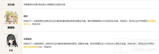 维里奈的“盛放”技能为队伍提供持续的生命回复,并且增加全体成员的伤害加深效果,显著增强了队伍的续航力与爆发力。白芷的“命源输送”则更侧重于为单个角色提供生命回复,同时也附带全伤害加深效果,适用于需要特定角色长时间保持高血量的状态下。辅助装备推荐