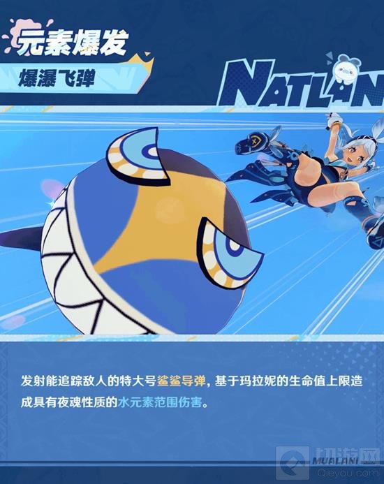 技能描述:发射追踪敌人的特大号鲨鲨导弹,基于玛拉妮的生命值上限造成范围伤害。