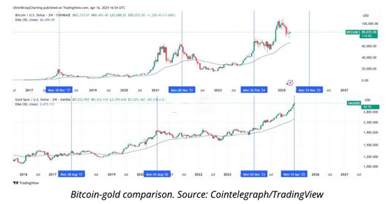 2017年,当黄金价格上涨30%,比特币价格在短短数个月后即攀升至19,120美元。类似的情形同样出现在2020年新冠疫情期间,黄金价格涨至约2,075美元后,比特币在隔年迅速飙升至69,000美元新纪录。