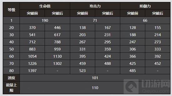 花火的80级角色属性为:生命值1397,速度101,攻防分别为523/485,通过角色晋阶和行迹加成可以获得28%生命值、24%暴击伤害、10%效果抵抗的成长。启动大招需要120点能量。身板在所有角色中比较抗揍,整体生存能力微弱优于知更鸟。