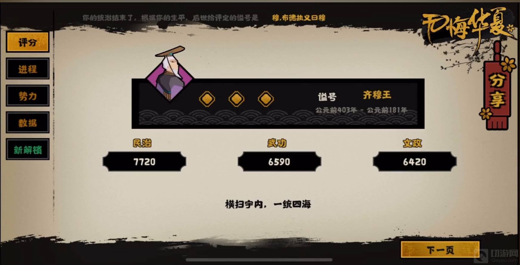 2.政令方面可以选择鼓励商贸,用部分粮食去赚钱养兵,到时候攻打一个粮食多的国家就可以补回来的。