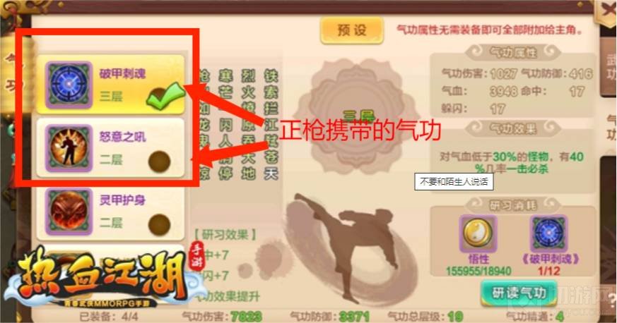 1.正枪气功。打魔王要带破甲刺魂、怒意之吼、以退为进、横练太保这个几个气功,最大化提升输出与防御。