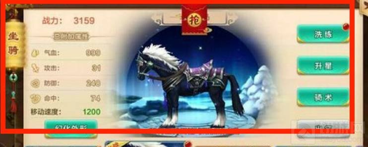 5.正枪坐骑。争抢坐骑推荐为乌骓,搭配骑术百毒不侵、铁马金戈、弱点强袭,战力是非常强的。也可以对坐骑进行洗练。