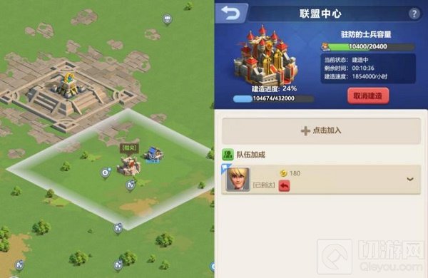 3、在建设期间,成员可以对建筑和旗帜进行支援建设,加快建造速度,获得联盟币奖励,因此有效的组织成员参与,可以大大缩短铺路耗时,在争夺神庙过程中快人一步。