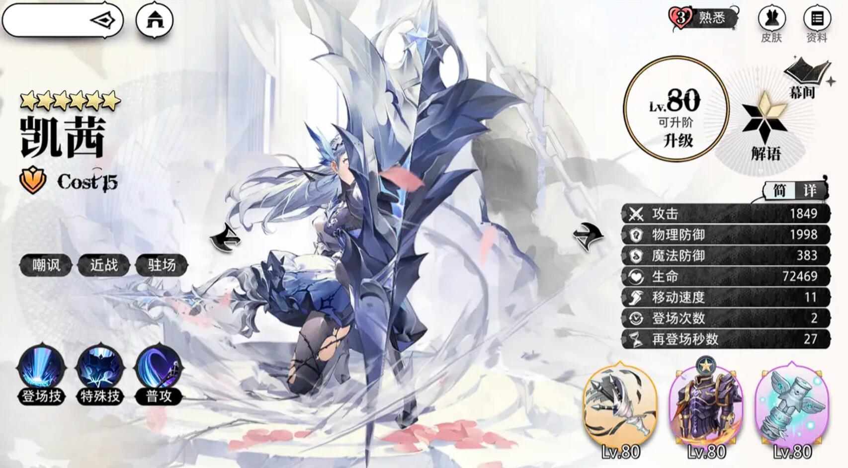 守护职业中,凯茜(14费)是T0坦克,登场技大范围嘲讽+减速,必杀技可打断敌方技能,解语3层减伤率提升15%。烛珥(10费)召唤鸟笼吸引火力,适合保护后排输出。