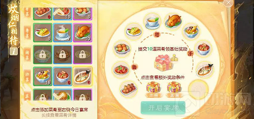 3、烹饪说明,炊烟仁相待是放置挂机类玩法,烹饪菜肴,开启宴席为目的。提交10道菜肴开启则完成任务,菜谱及食材在市集中获取,安排帮手在市集中收集即可。烹饪可增加烟火仁心值。每晚10点结算排行榜发放奖励。