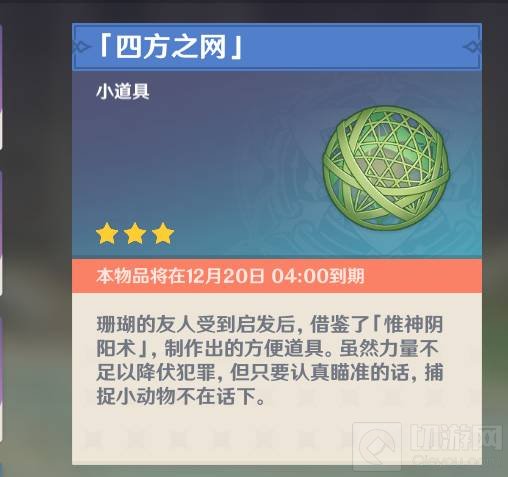 1、通过万端珊瑚事件簿·犬武者活动,可以获得小道具‘四方之网’。