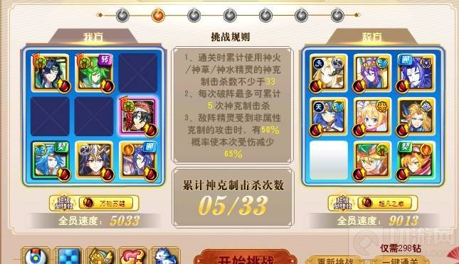 3、第三关火次三连随便锁,冰王练度高一些抗住火次二连并打死一血火次。