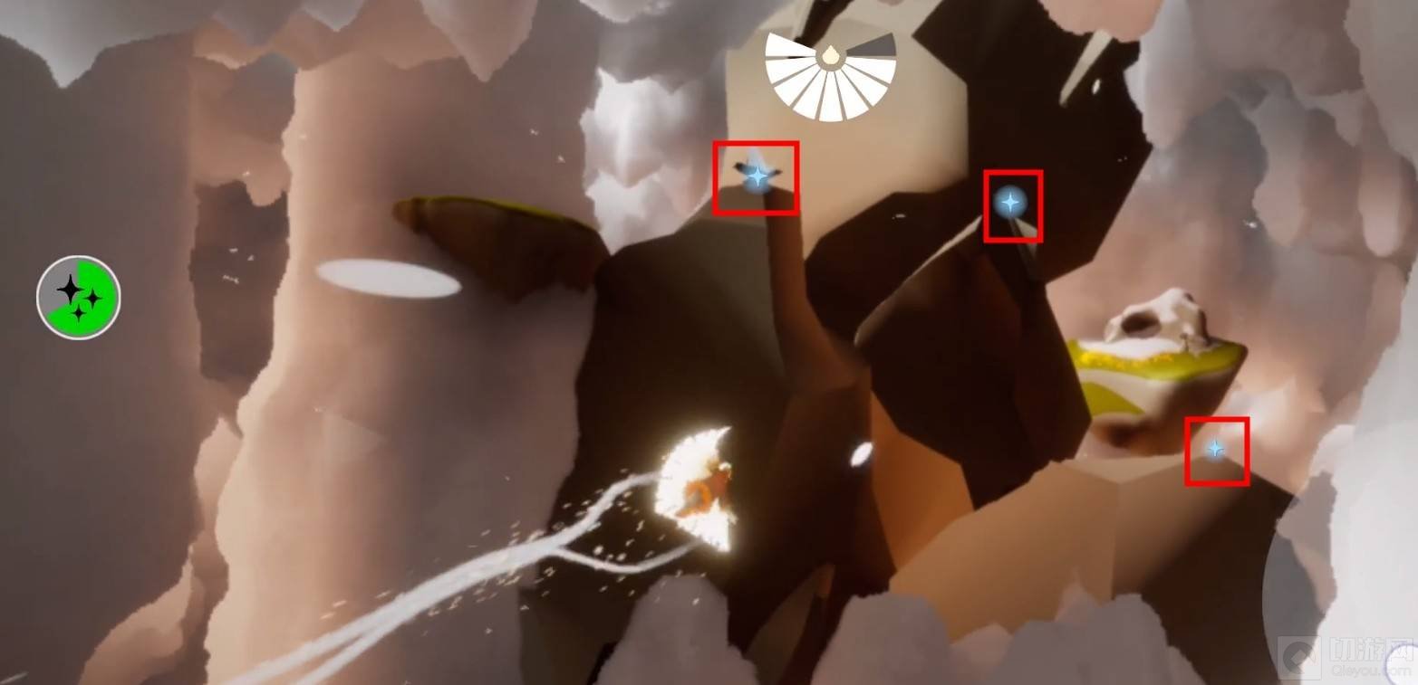 7.第二处解决后,我们接着往前方云柱的后面飞,翻过云层就可以看到第三处黑暗植物的位置。
