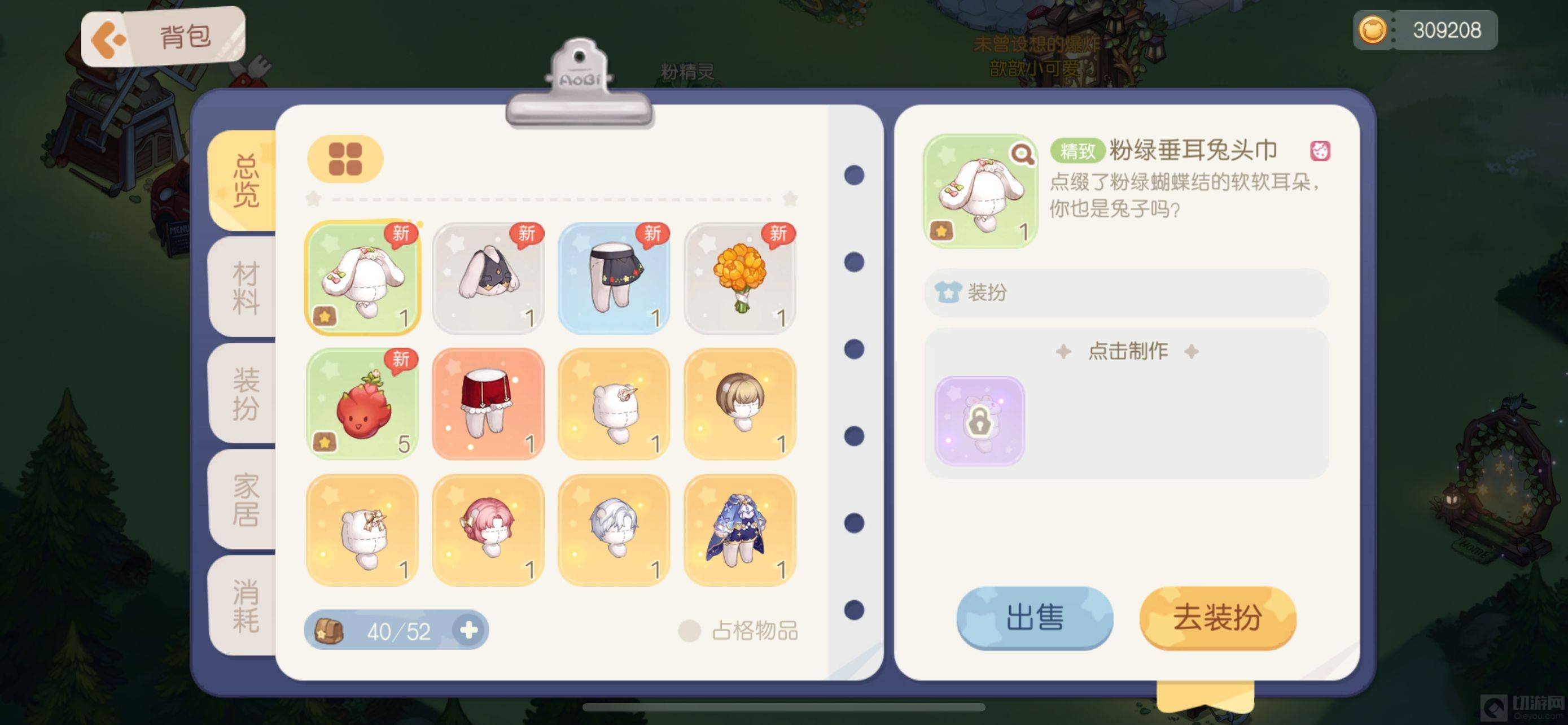 3、粉绿垂耳兔头巾可以在制衣工坊4级和岛建等级23级就可以制作。